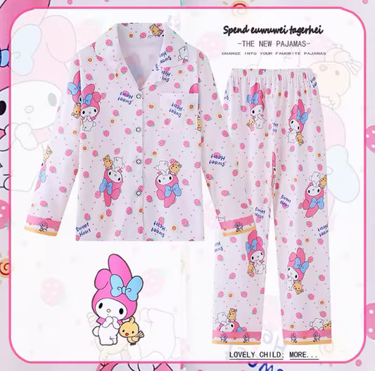 2pcs Kids “Hello Kitty & Friends” Pajamas, Long Sleeve Top & Pants Set