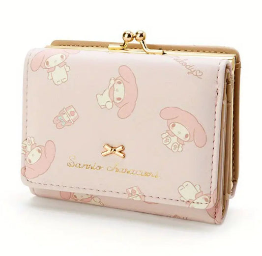 Sanrio “Hello Kitty & Friends” PU Casual Short Wallet, Zipper, Buckle Card Holder