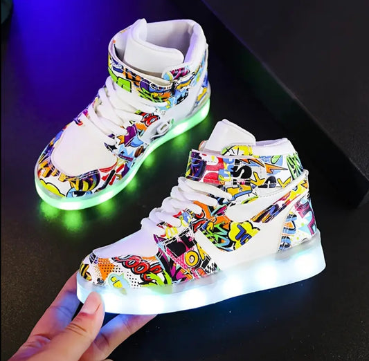 “Graffiti” High Top, Street Style, Charging LED Light Up Skate Shoes, Kids