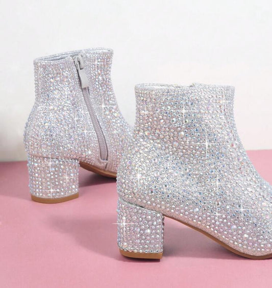 Girls “Swifty Rhinestone” Side Zipper, Chunky Heeled Boots ♥️🎤🎼