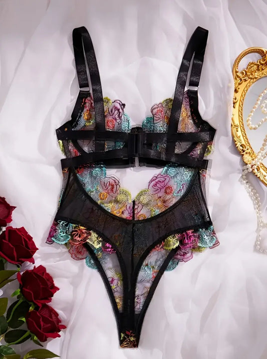 Floral 🌺 See Through Teddy Bear One Piece Hollow Out Backless