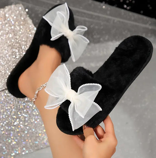 Winter Plush Comfort Slippers - Faux Pearl Accents