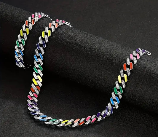 2pcs Fashion Faux Diamonds, Cuban Chain Necklace & Bracelet