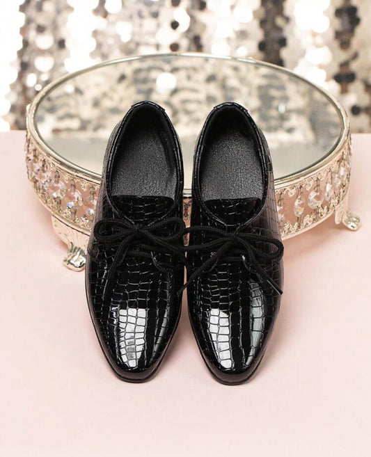 Children's Simple Plain Black Pointed Toe Leather Dress Shoes For Boys
