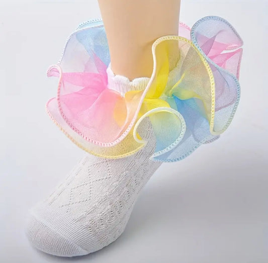 Rainbow Double Layer Lace Ruffle Princess Socks, Little 🎀 Girls Collection