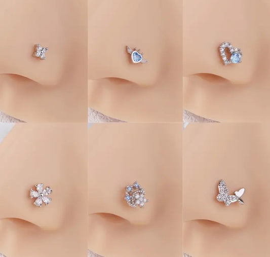 âBaby Blueâ 6 pcs 18K Gold Plated Copper Nose Rings