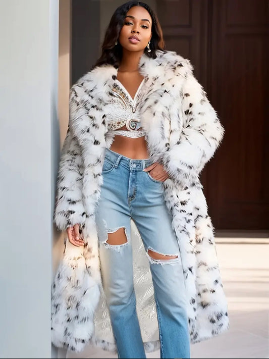 Faux Fur Open Front Coat, Elegant Long Sleeve Warm Outerwear, Posh 💋 Mommies Collection