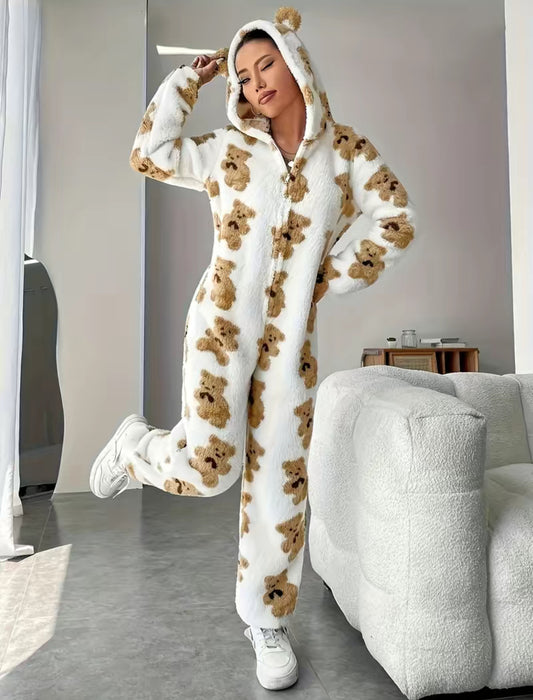 Modish Bear Fuzzy Hooded Jumpsuit,