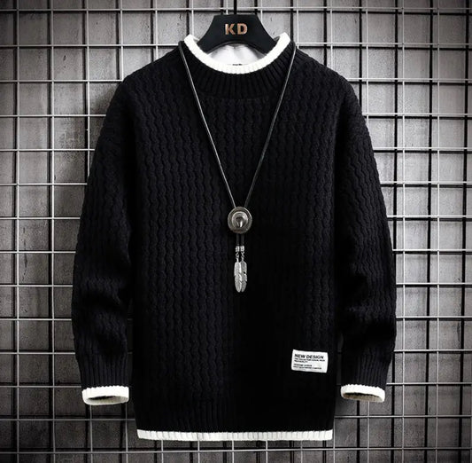 Knitted Ribbed Sweater, Men's Mid Stretch Stand Collar Pullover, Sugar Daddy 🎩 Collection