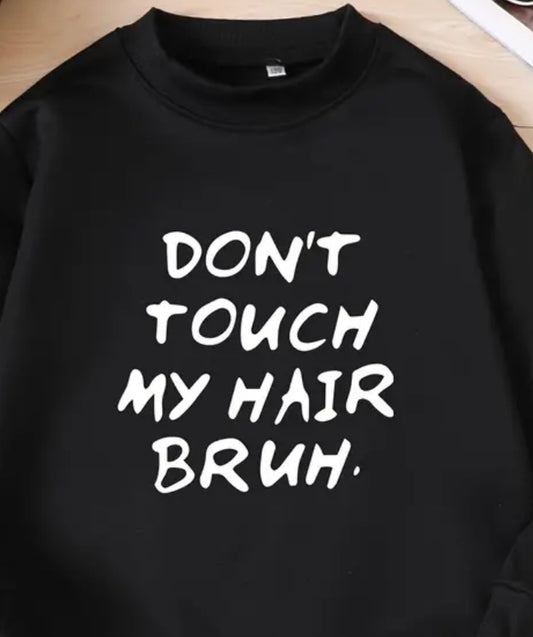 “DON'T TOUCH MY HAIR Bruh” Pullover Sweatshirt, Gender Neutral, Kids