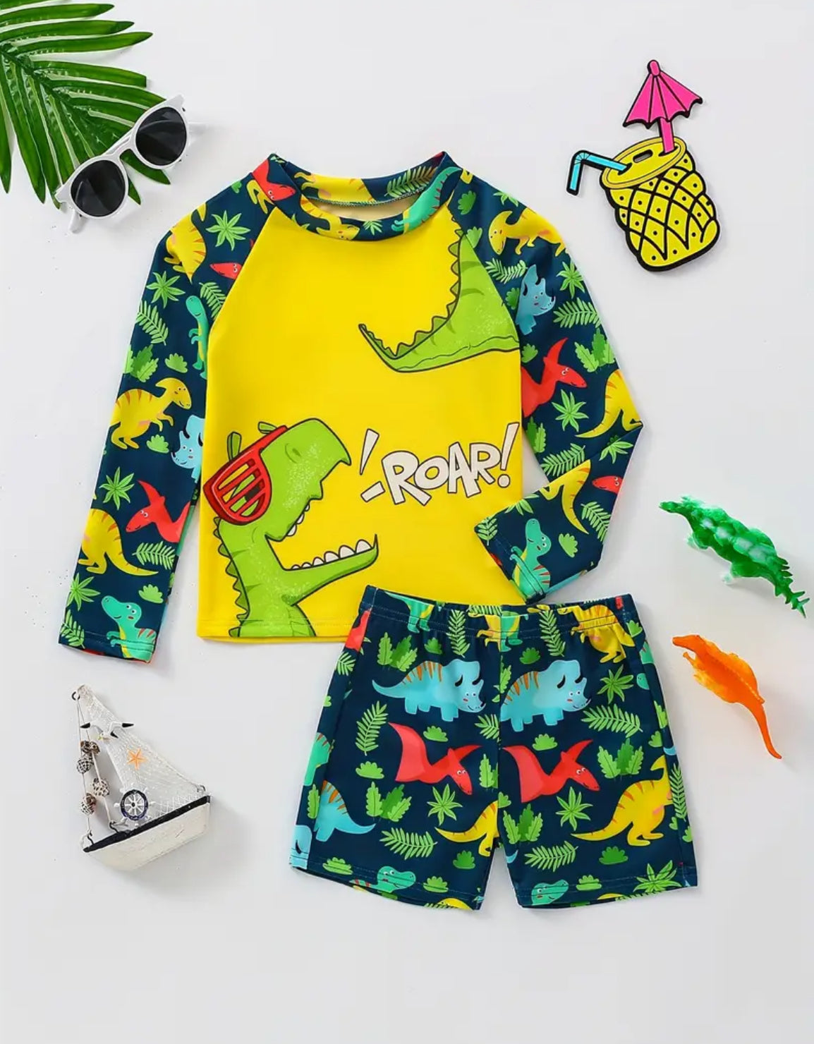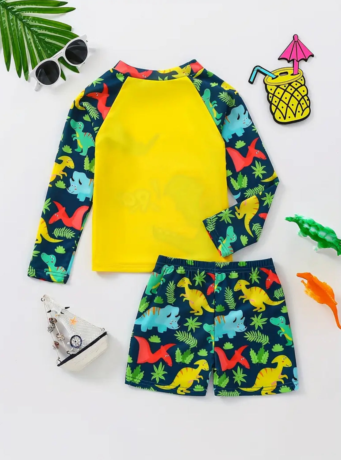 Dinosaur’s Boys Swimwear Long Sleeve Top & Shorts