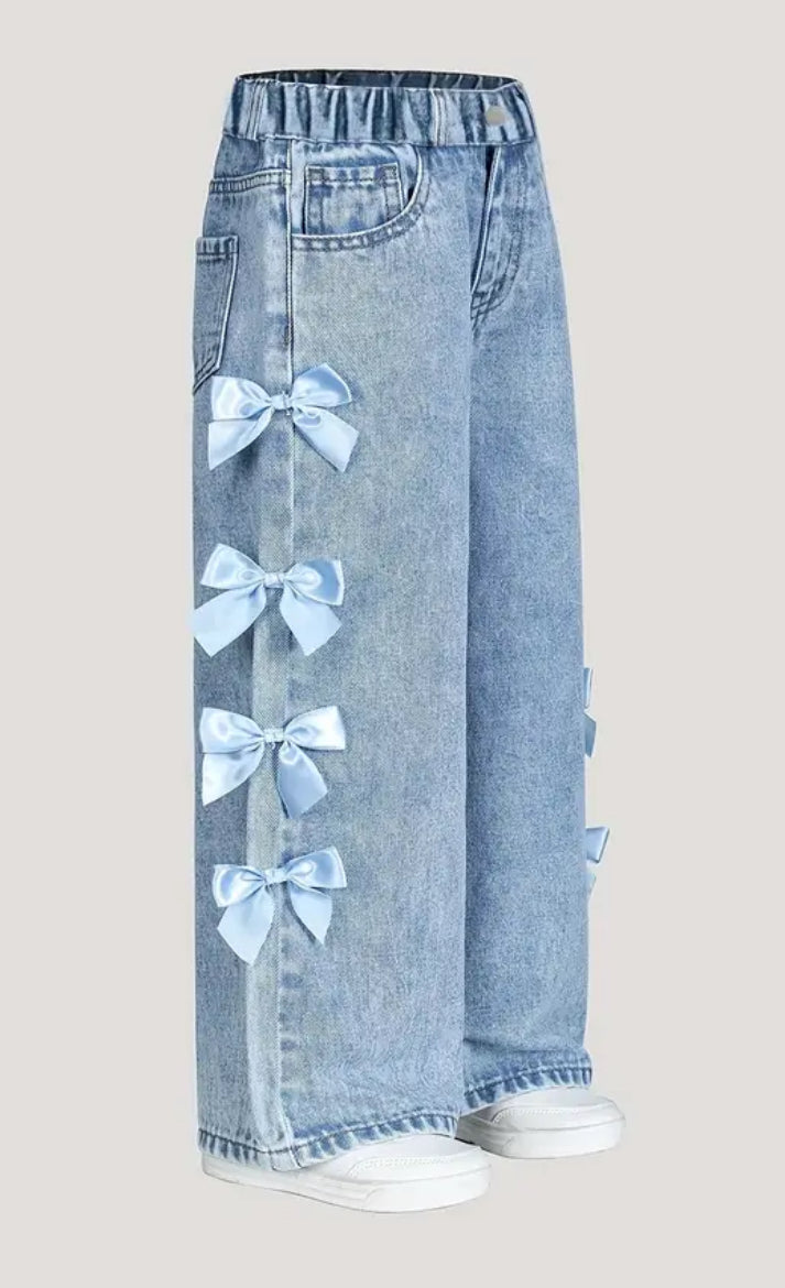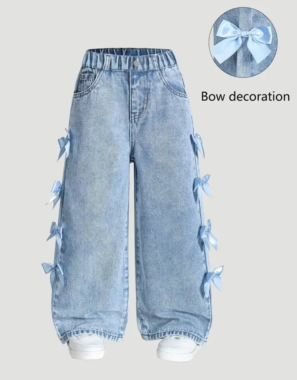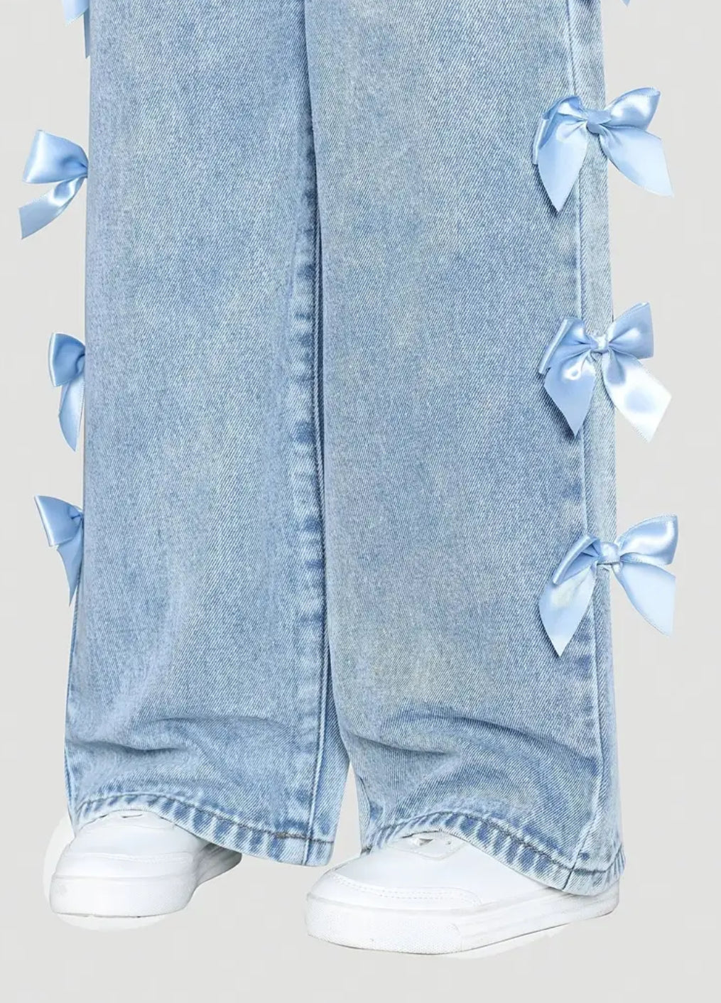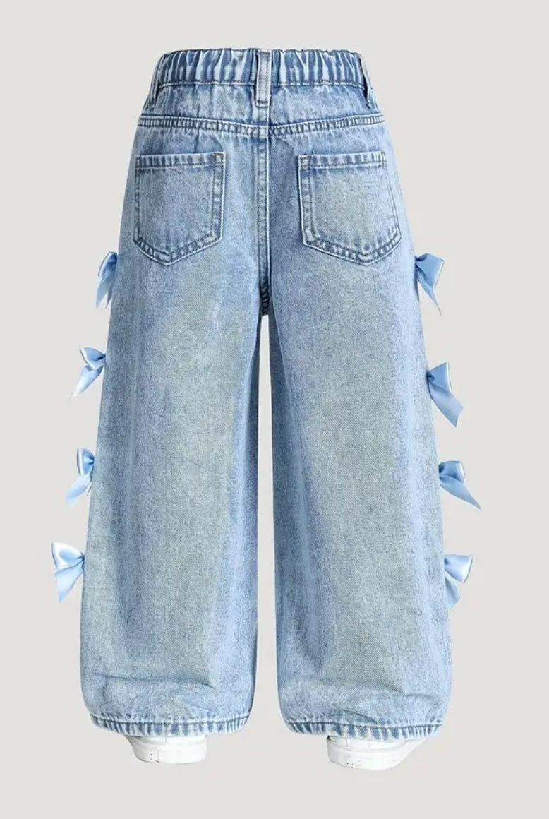 ‘Bows & Denim’ Girls Wide-Leg Jeans