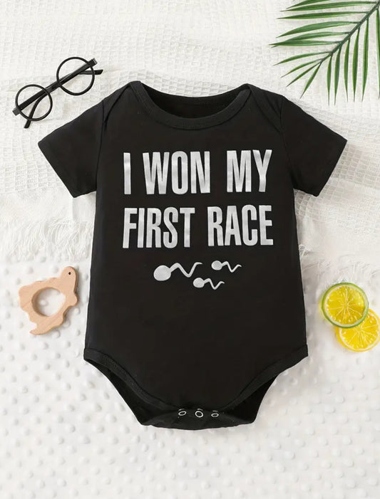 “I Won My First Race” Little Swimmers, Boys + Girls Onesie
