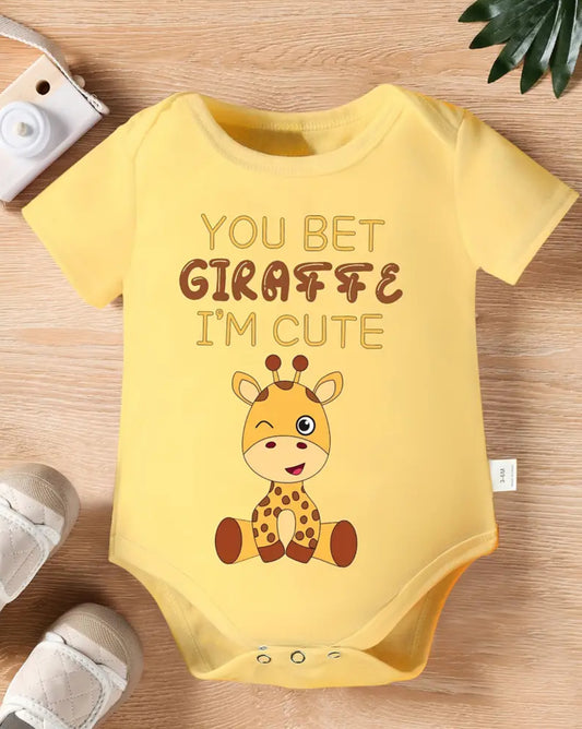 “You Bet Giraffe I’m Cute” Short Sleeve Round Neck Onesie