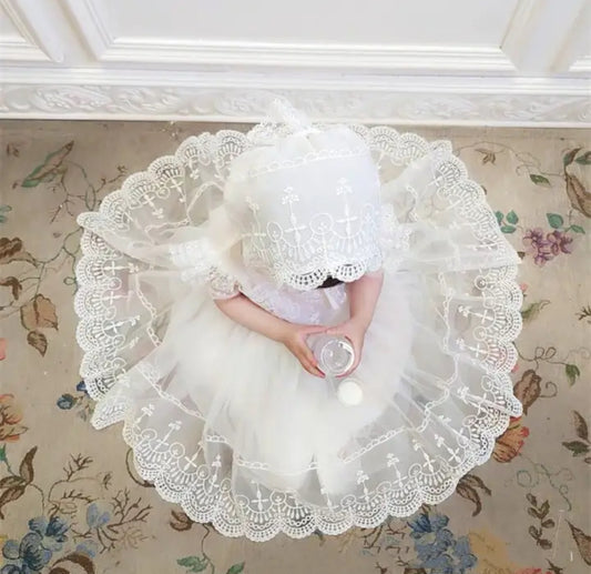 Baby Dedication, Pure White Baby Dress With Bonnet