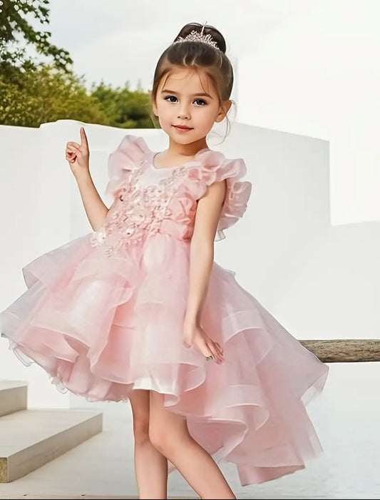 Trailing Mesh Princess Dress With Flutter Sleeves And Floral Embroidery, Glam ✨ Dresses Collection