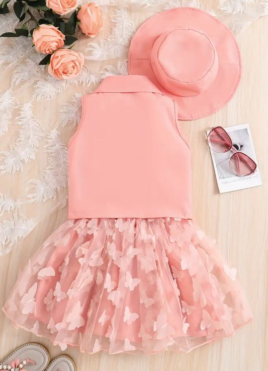 Little Girl Sweet Formal Outfit Lapel Vest Blazer,Top & Skirt