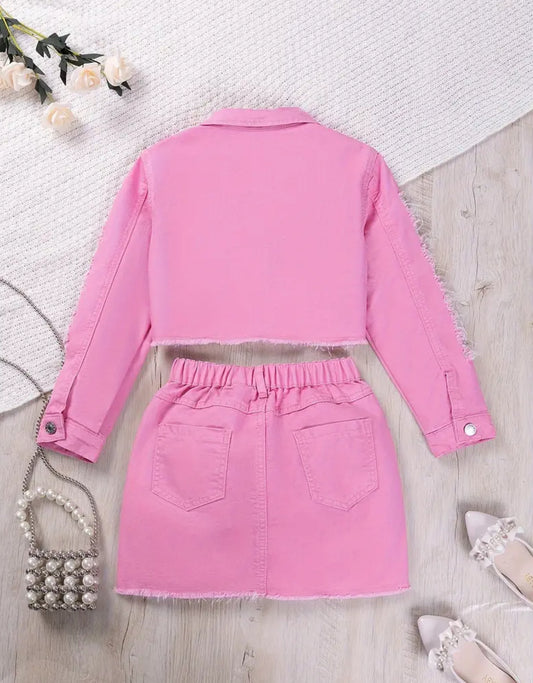 Girl's 1 Set Ripped Jean Jacket Top +Skirt