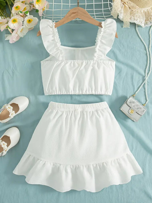 Sleeveless Ruffled Top + Faux Button Skirt Set