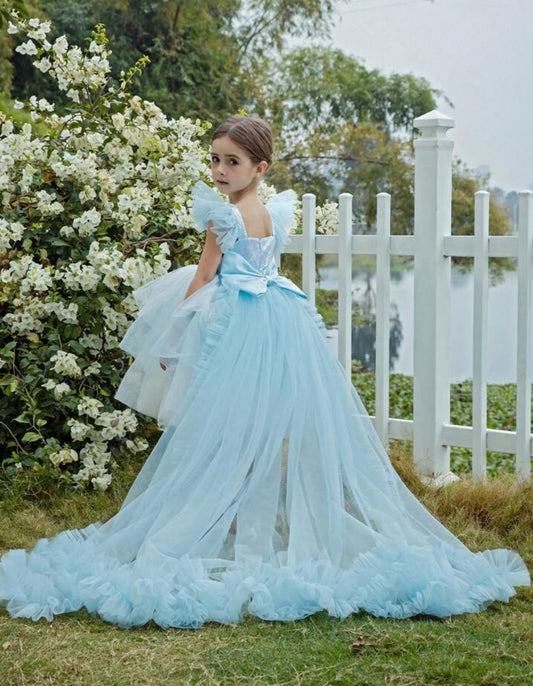 Posh 💞 Girl Princess Dress With Bow Decoration, Sequin, Mesh Tulle Train