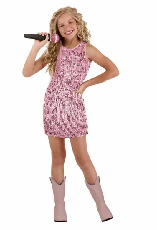 Glittering Sequin Decor, Sleeveless Dress For Girls