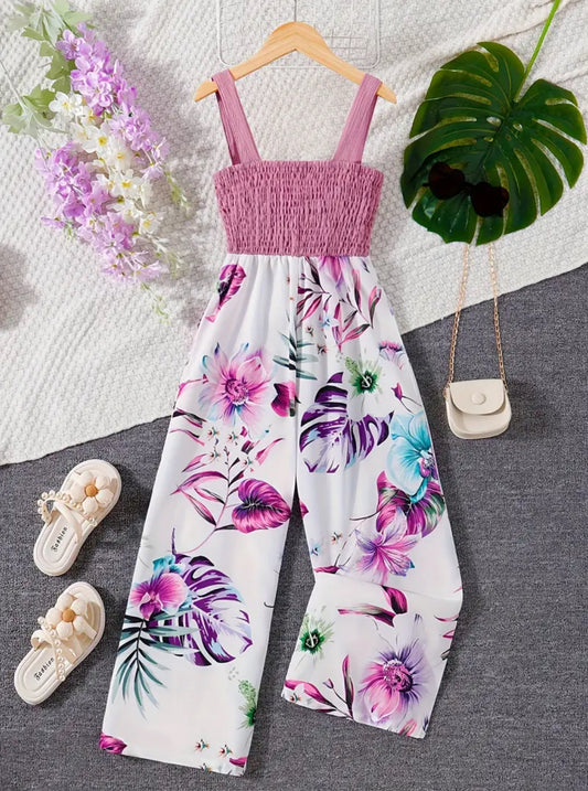 “Summer” Wide Leg Romper - Shirred, Non-Stretch, Loose Fit, Youth