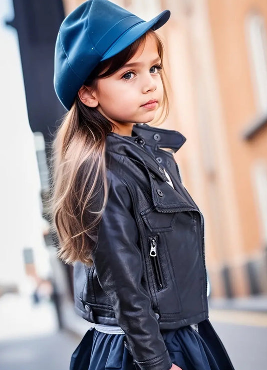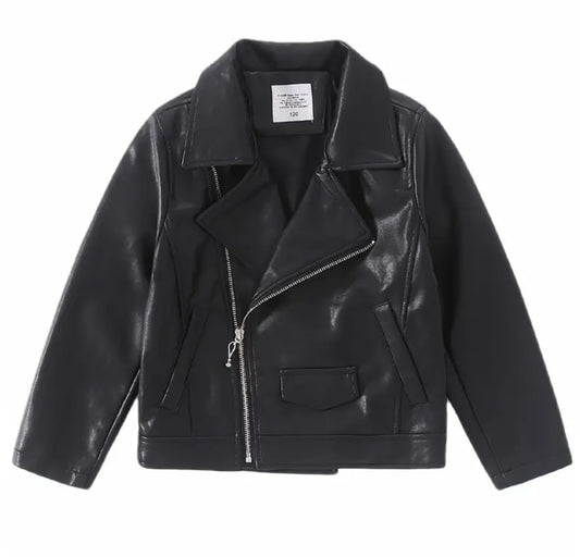 Girls Motorcycle Stand Collar Diagonal Zipper Leather Jacket For Spring And Autumn