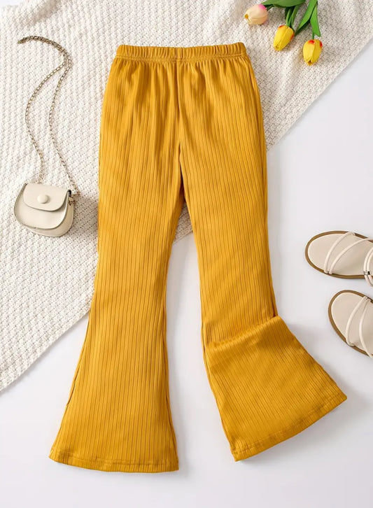 Girls Ribbed, Bell-bottom Pants, Versatile & Elegant