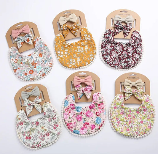 Cute Floral Cotton Newborn Baby Bib & Headband Set