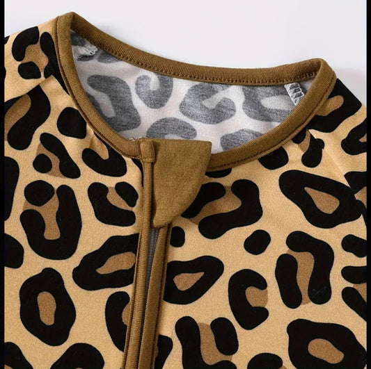 Baby Girls One-piece Bamboo Fiber, Cozy Soft Sleepwear With Zipper, Leopard Print Comfy & Breathable