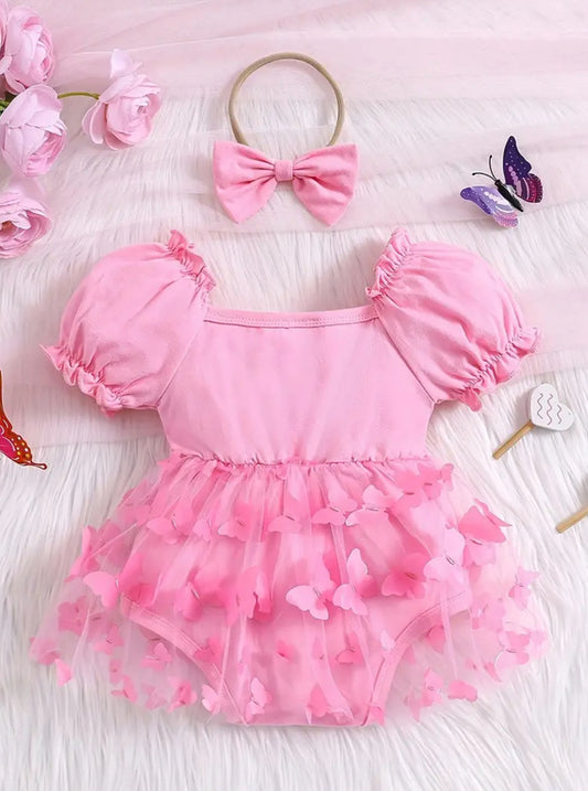 Butterfly Dreams, Butterfly Decor Bodysuit and Puff Sleeve Dress