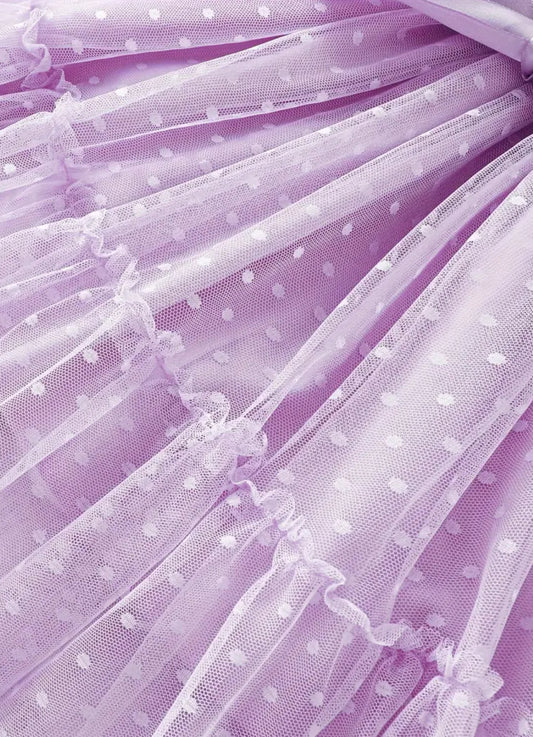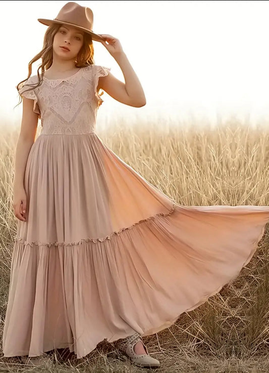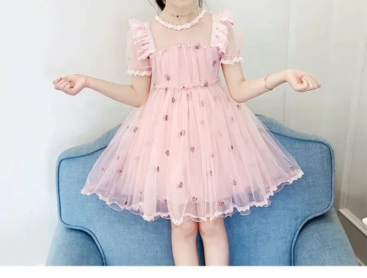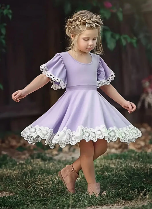 Girls Butterfly Sleeve Contrast Lace Trim Princess Dress