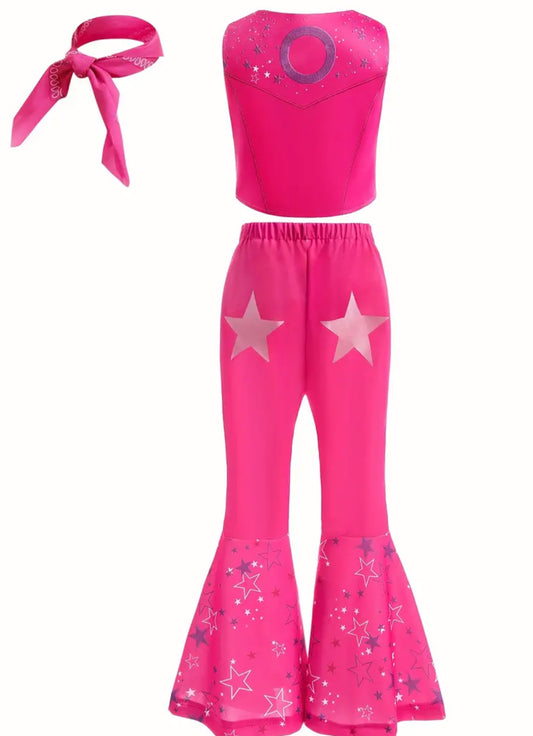 3pcs Cowgirl Girls Vest, Scarf, and Flared Pants Outfit