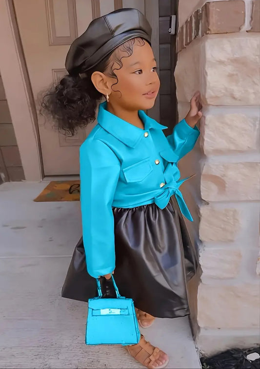 Trendy & Chic Faux Leather Dress With Belt, Glam ✨ Baby Collection