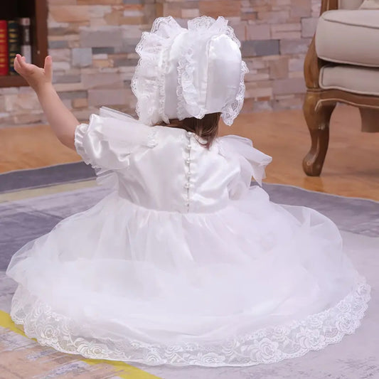 Baby Dedication, Pure White Baby Dress With Bonnet