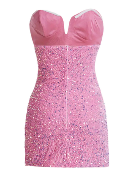 “Glitter Barbie” Split Hem Sequin Tube Bodycon Dress, Women’s