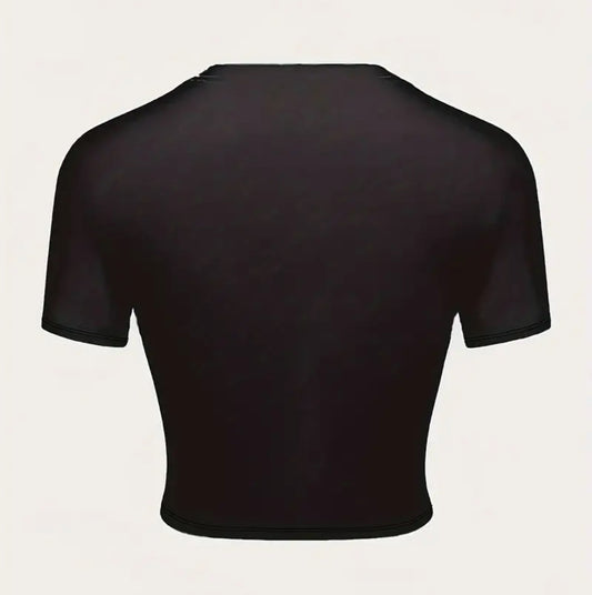 “Silver Kiss” Crew Neck, Crop Top, Women's Slim Fit, Short Sleeve