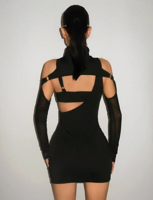 1pc Elegant Women's Long Sleeve Bodycon Mini Dress with Unique Skirt Design