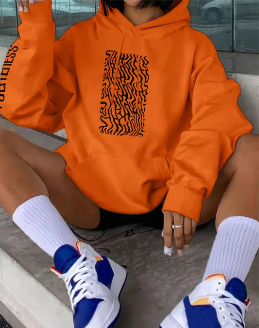 “Politeness” Orange Casual Long Sleeve Hooded Sweatshirt, Drawstring