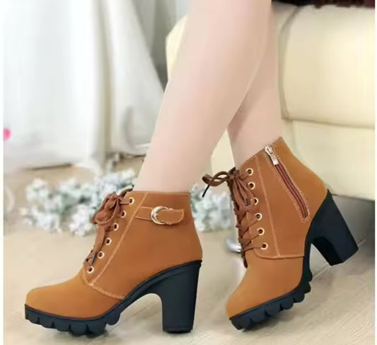 Women’s Platform Boots Buckle Decir, Side Zipper, Thick Short Heel Ankle Boot