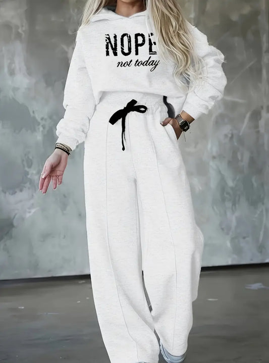 Pantsuit Set - Women's Hoodie and Drawstring Waist Sweatpants with Relaxed Fit, Casual Chic