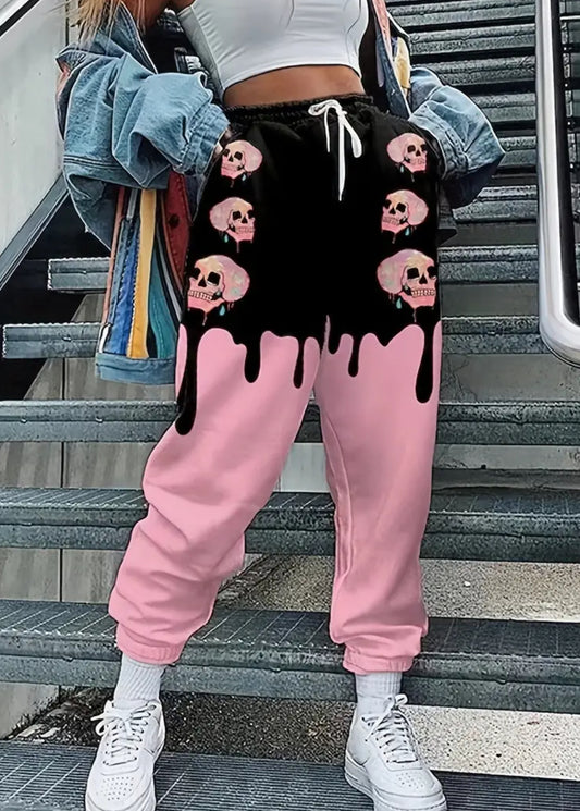 Stylish Pink Skull Graphic Sweatpants Streetwear Women’s/ Teen