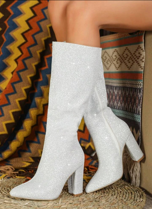 Glamorous Glitter Classic Boots, Zide Zip Chunky Heeled