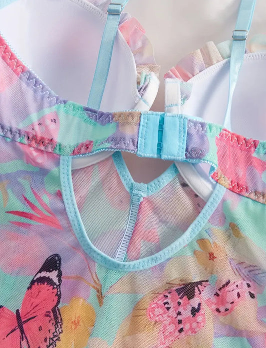 🦋 Sexy Floral Print Bodysuit With Ruffle Detail - Semi-Sheer, Stretch Fabric