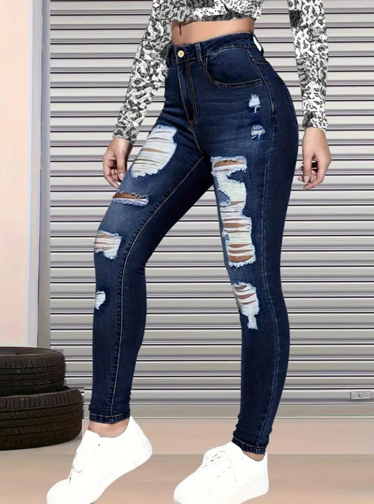 Slim Fit, High Stretch, Tight Jeans, Ripped Casual Skinny
