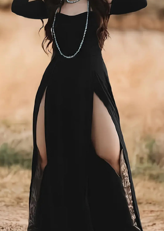 Elegant, Simple, Slim-Fit Design, Vibrant Off The Shoulder Sleeves Split Dress