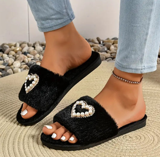 Soft “Cozy Love Heart” Warm Indoor Fluffy Slippers Non-Slip Rubber Sole
