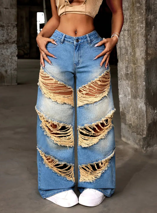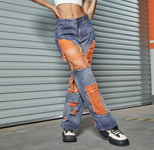 Distressed Edgy Ripped, European And American Fashion, Long Ladies Jeans