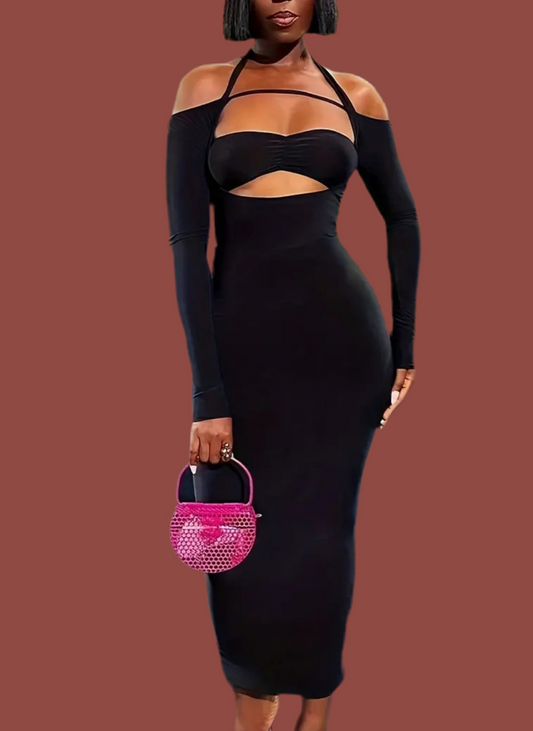 Sexy Long Sleeve Maxi Dress, Elegant Cut Out