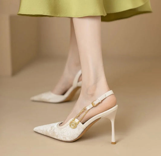 Sequins, Metal Buckle, Slingback, Heeled Sandals Pointed Toe